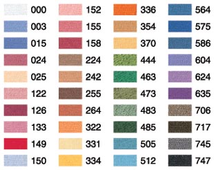つや消しの刺しゅう糸 カントリー調の40色と刺しゅう用下糸1個(計41個)がセットされています。素朴さと暖かさが表現できます。