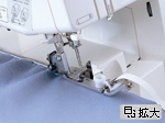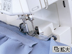 ニット地など伸縮素材のまつりぬいをする時に使います。たち目かがりと裾上げが同時にできます。