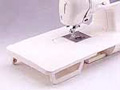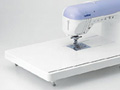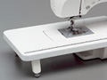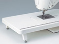 付属の補助テーブルを外してワイドテーブルに交換すると大きいものを縫製する時に作業がしやすくなります。